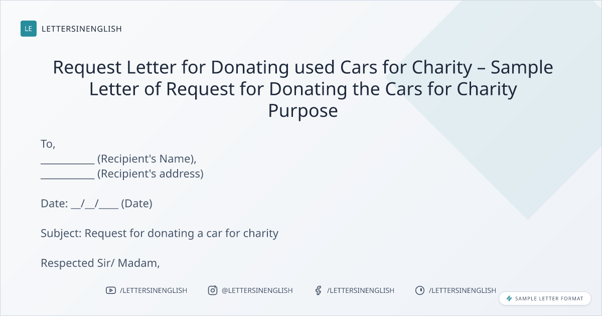 Request Letter for Donating used Cars for Charity – Sample Letter of Request for Donating the Cars for Charity Purpose