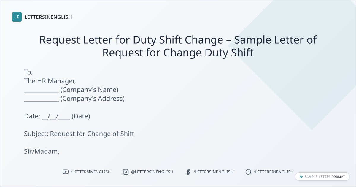 Request Letter for Duty Shift Change – Sample Letter of Request for Change Duty Shift