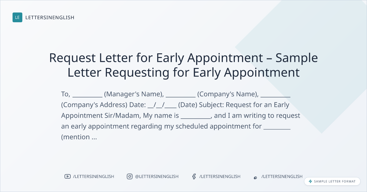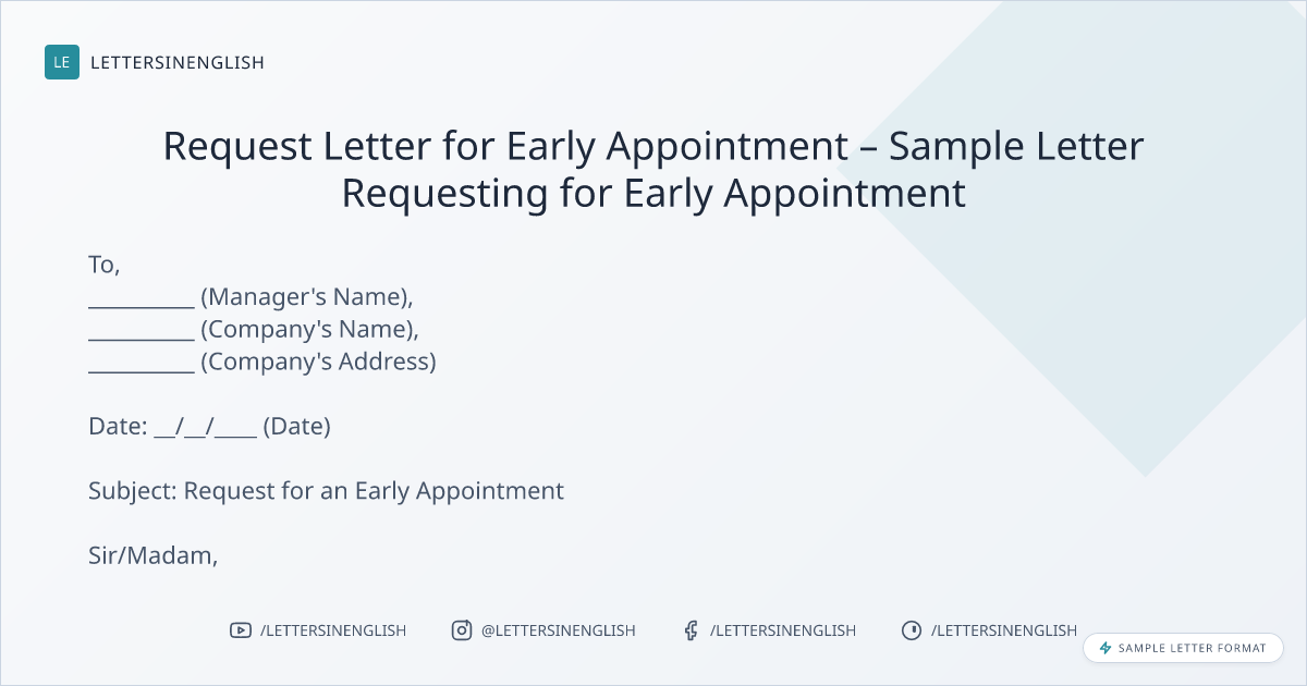 Request Letter for Early Appointment – Sample Letter Requesting for Early Appointment