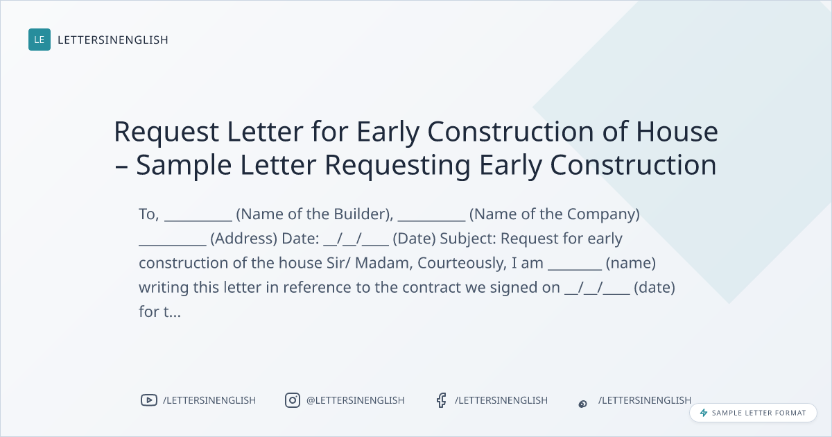 Request Letter for Early Construction of House – Sample Letter Requesting Early Construction