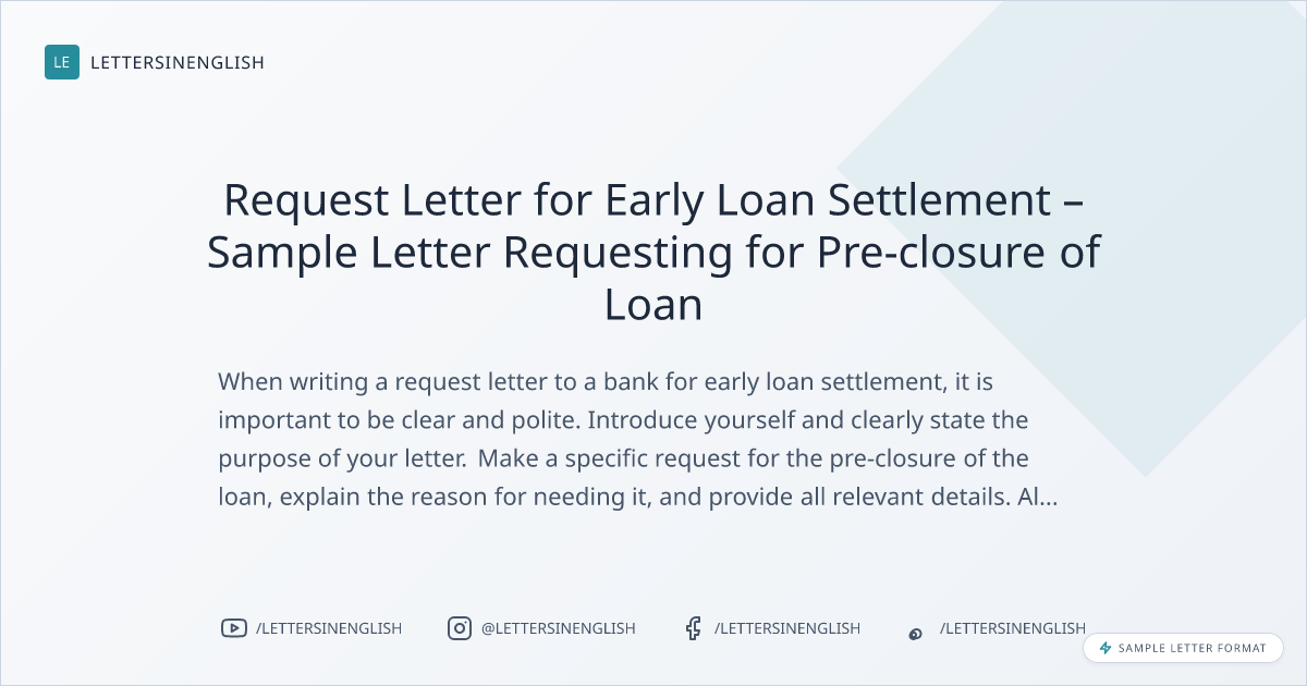 Request Letter for Early Loan Settlement – Sample Letter Requesting for Pre-closure of Loan