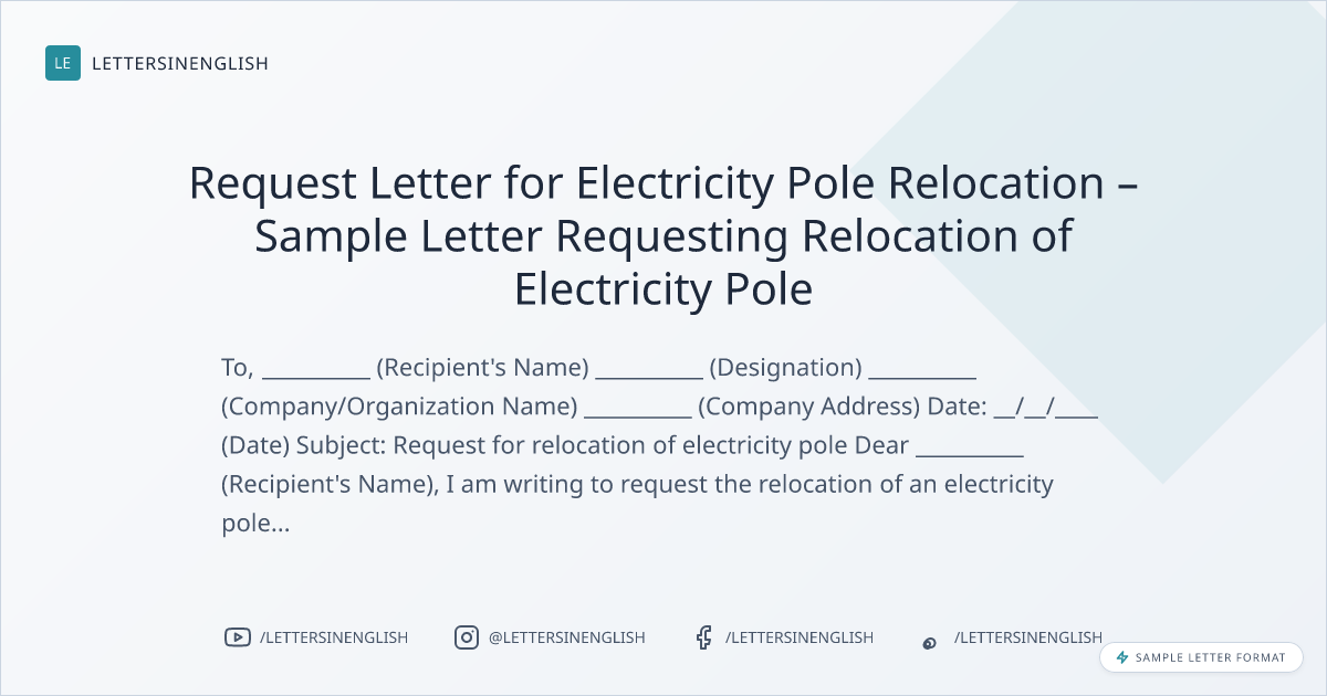 Request Letter for Electricity Pole Relocation – Sample Letter Requesting Relocation of Electricity Pole