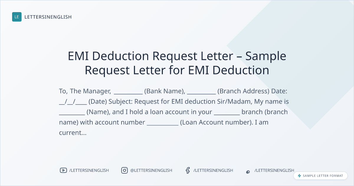 Sample Request Letter for EMI Deduction