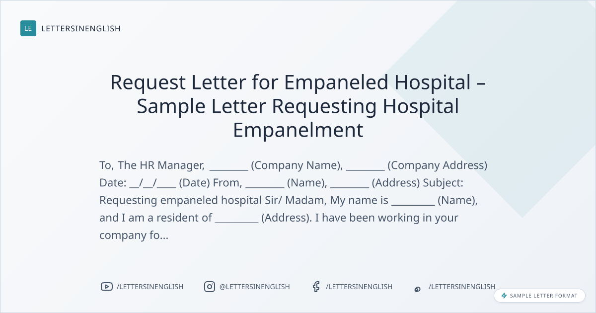 Request Letter for Empaneled Hospital – Sample Letter Requesting Hospital Empanelment