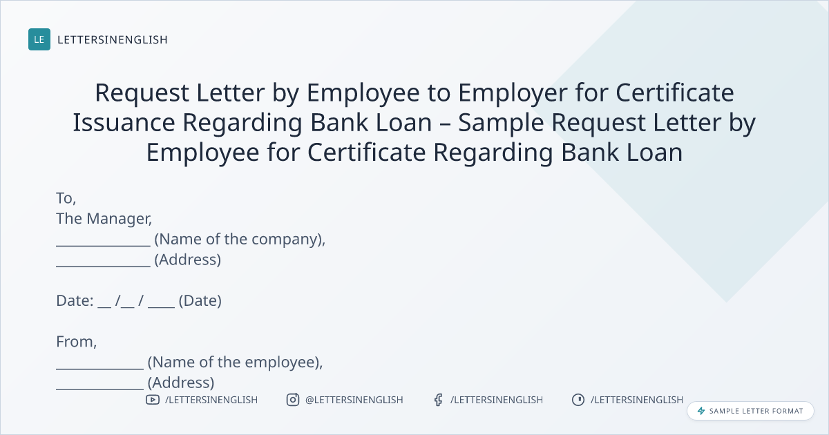 Request Letter by Employee to Employer for Certificate Issuance Regarding Bank Loan – Sample Request Letter by Employee for Certificate Regarding Bank Loan