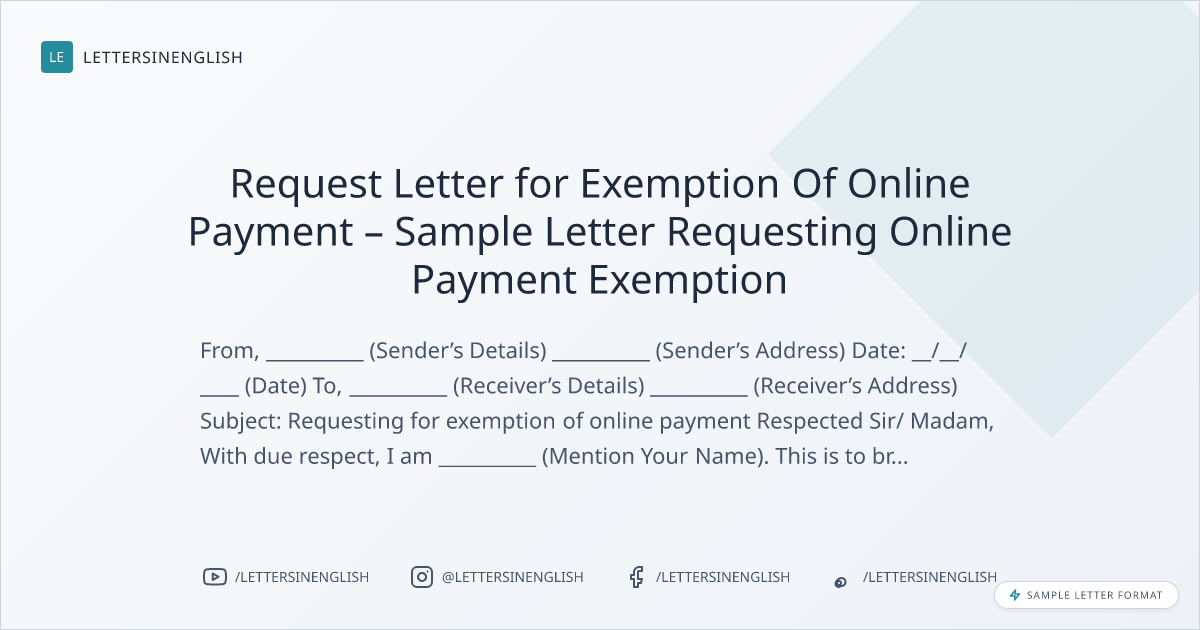 Request Letter for Exemption Of Online Payment – Sample Letter Requesting Online Payment Exemption