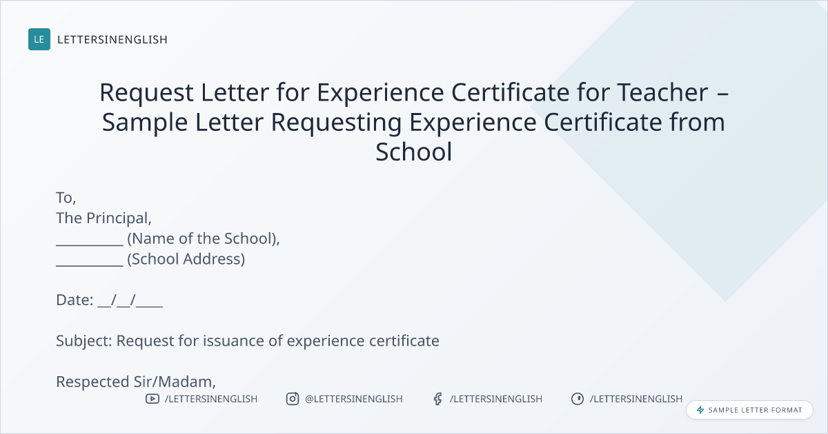 Request Letter for Experience Certificate for Teacher – Sample Letter Requesting Experience Certificate from School