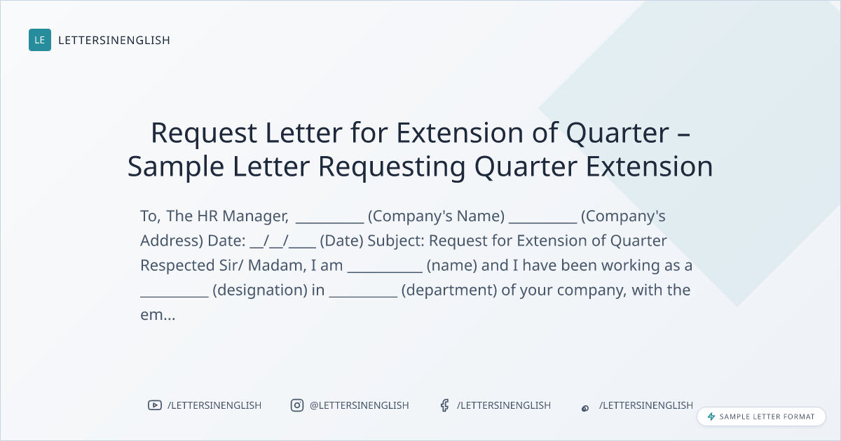 Sample Request Letter for Extension of Quarter