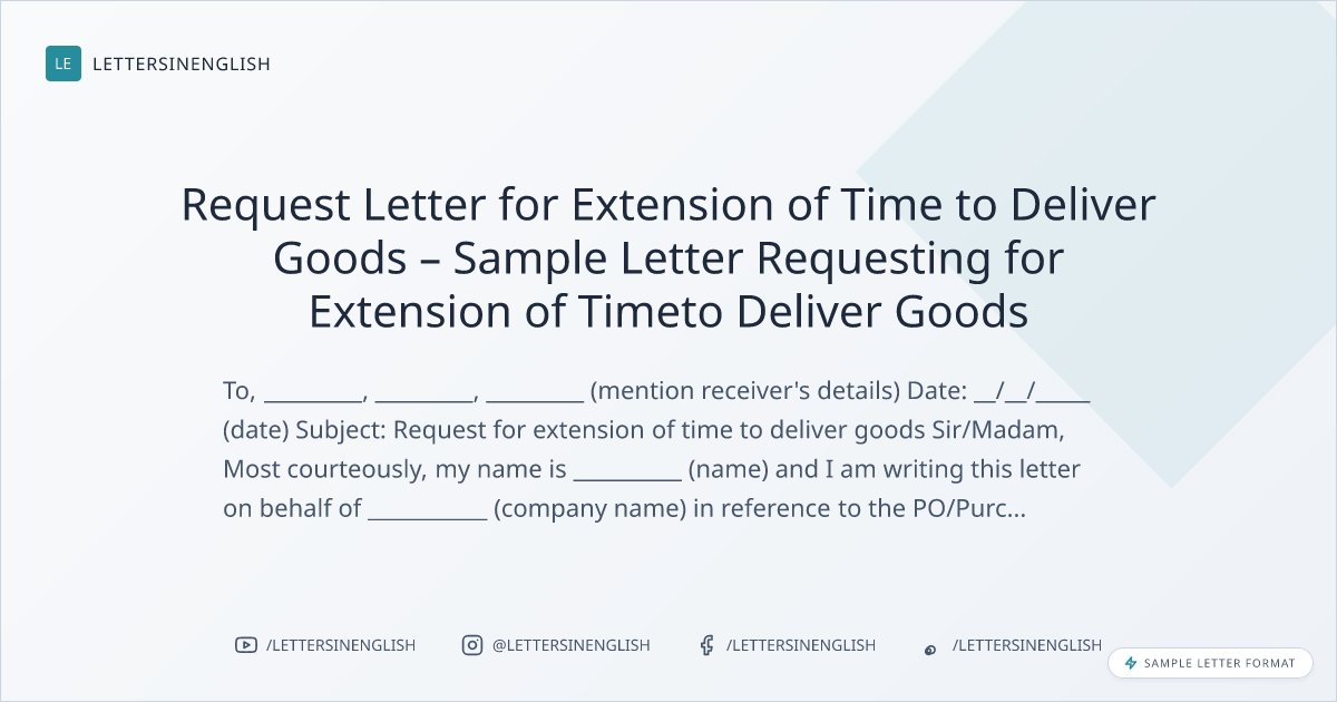 Request Letter for Extension of Time to Deliver Goods – Sample Letter Requesting for Extension of Timeto Deliver Goods