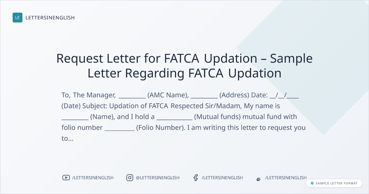 Request Letter for FATCA Updation – Sample Letter Regarding FATCA Updation