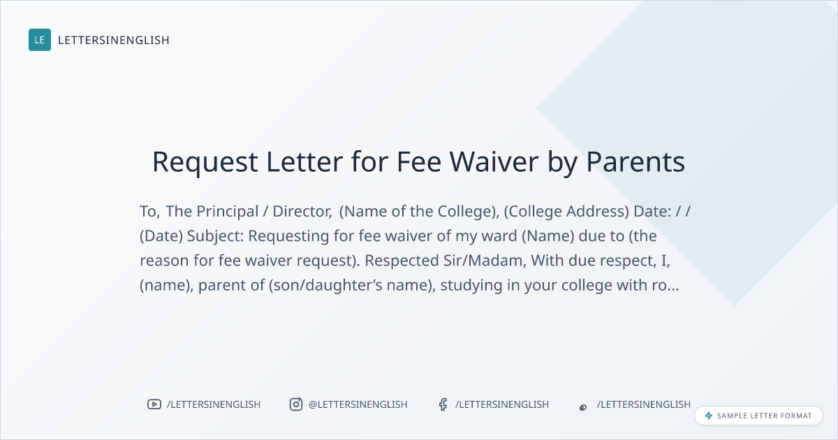 Sample Letter for Fee Waiver for Child's Education by Parents