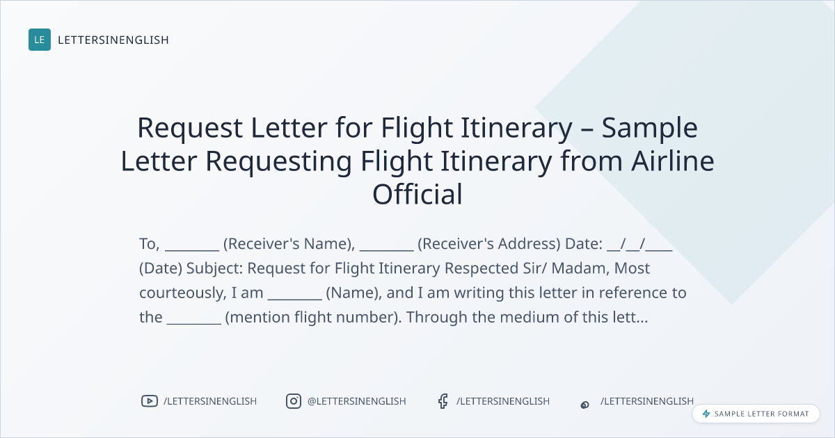 Request Letter for Flight Itinerary – Sample Letter Requesting Flight Itinerary from Airline Official