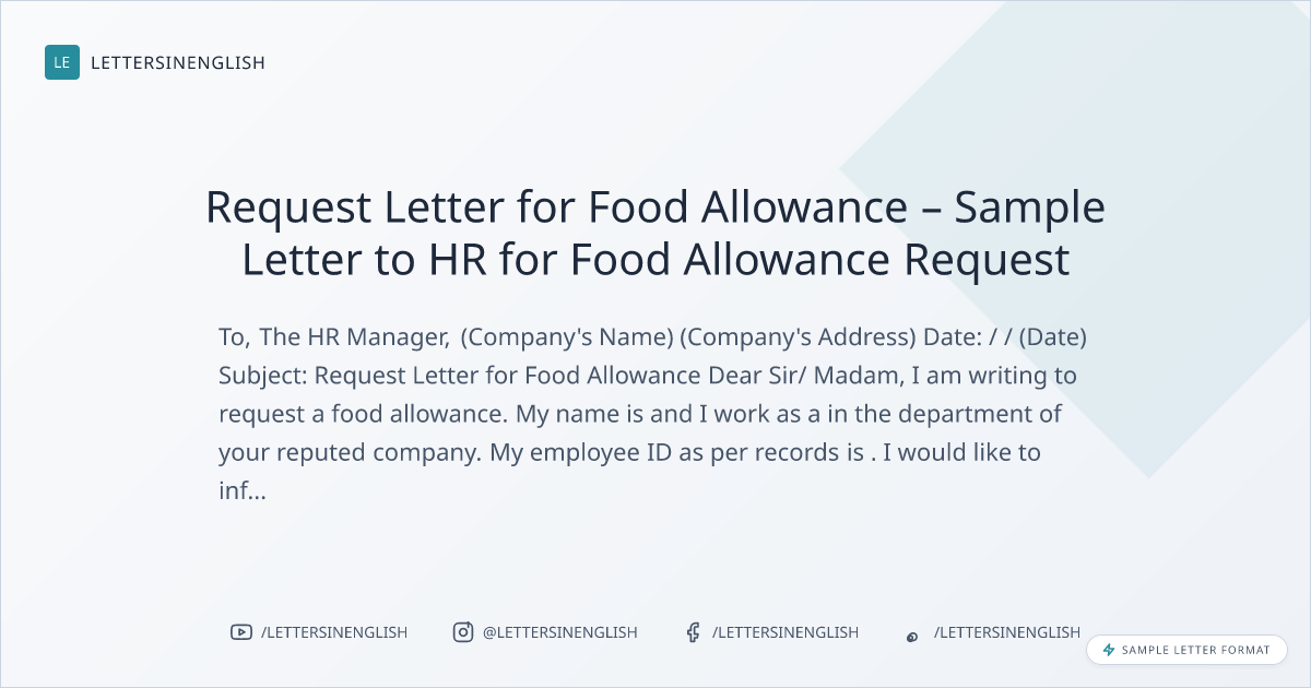Request Letter for Food Allowance – Sample Letter to HR for Food Allowance Request