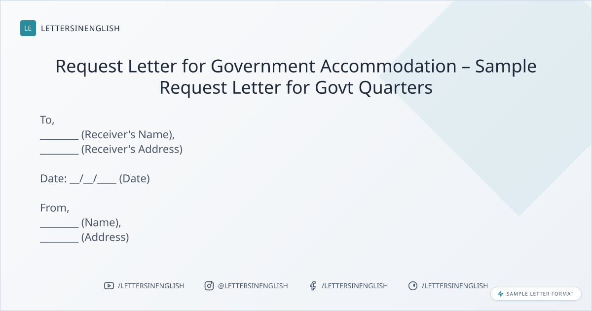 Request Letter for Government Accommodation – Sample Request Letter for Govt Quarters