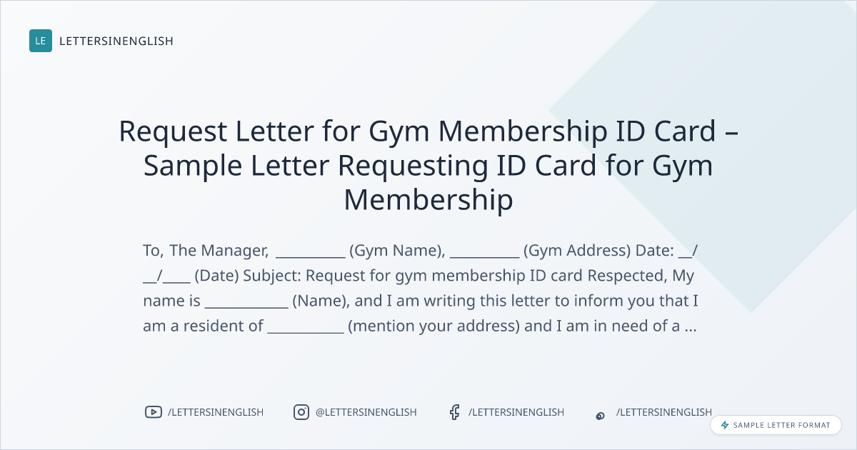 Request Letter for Gym Membership ID Card – Sample Letter Requesting ID Card for Gym Membership