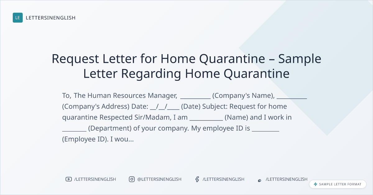 Request Letter for Home Quarantine – Sample Letter Regarding Home Quarantine