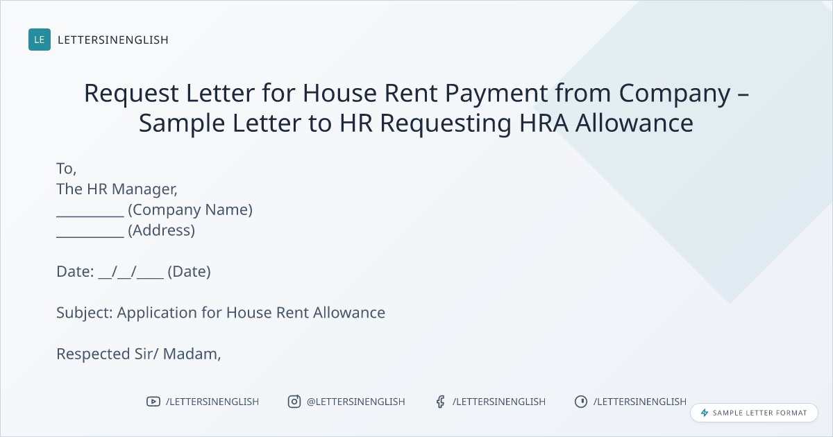 Request Letter for House Rent Payment from Company – Sample Letter to HR Requesting HRA Allowance