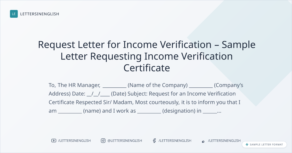 Request Letter for Income Verification – Sample Letter Requesting Income Verification Certificate