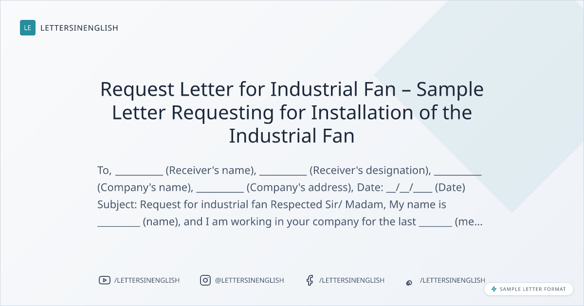 Request Letter for Industrial Fan – Sample Letter Requesting for Installation of the Industrial Fan