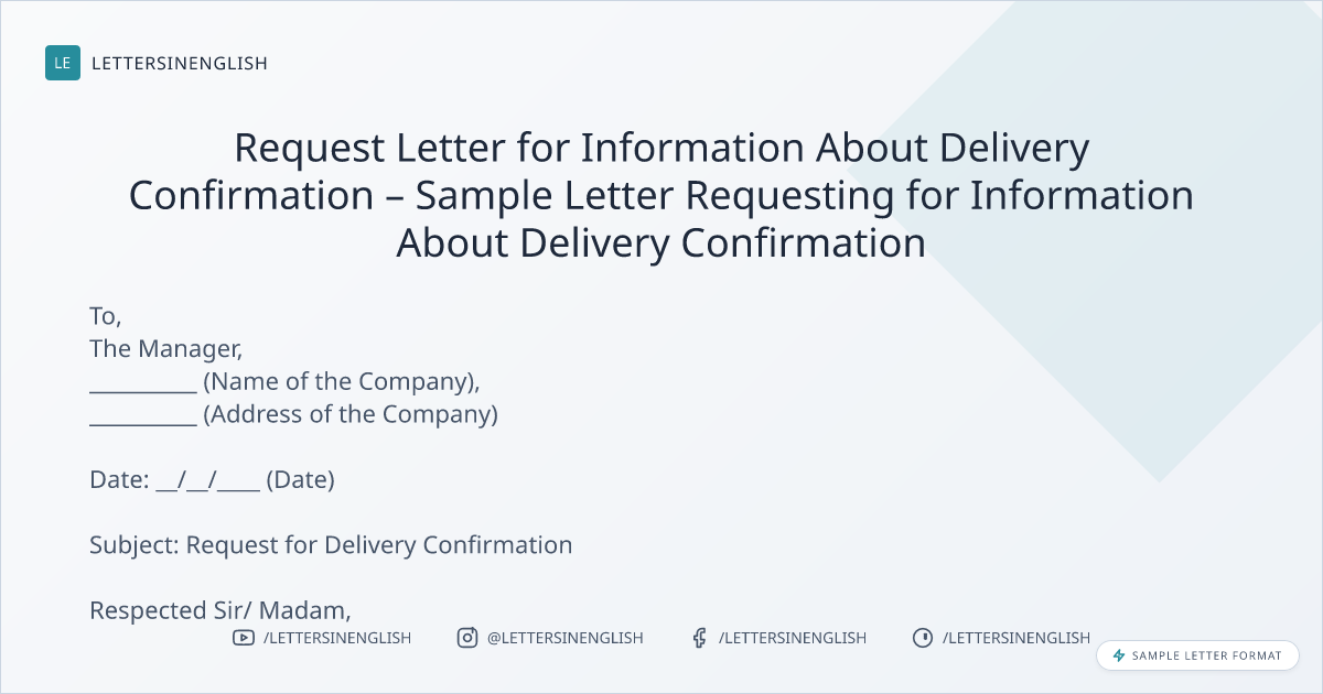 Request Letter for Information About Delivery Confirmation – Sample Letter Requesting for Information About Delivery Confirmation