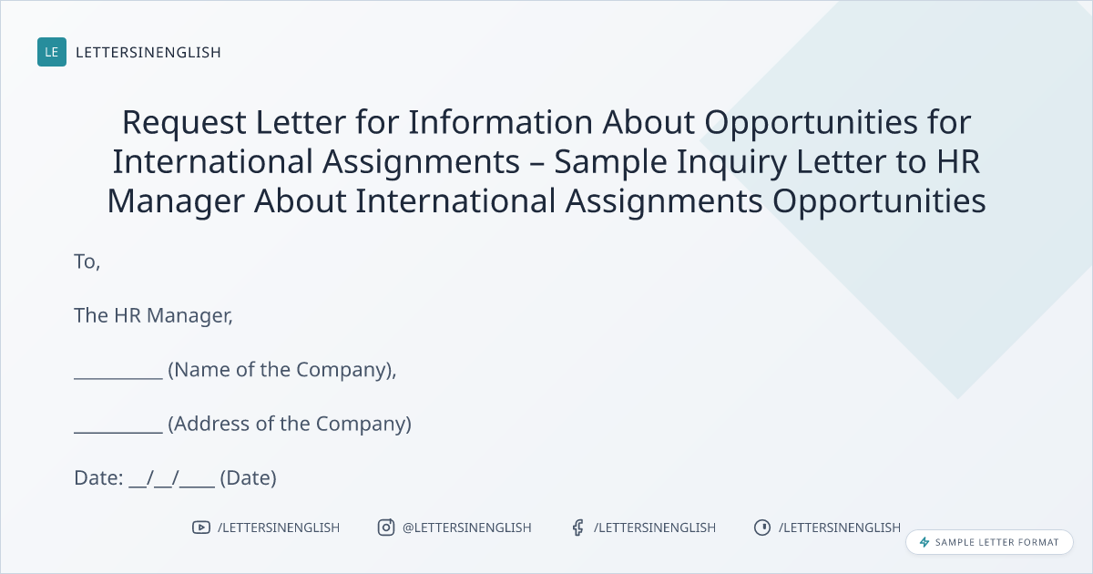 Request Letter for Information About Opportunities for International Assignments – Sample Inquiry Letter to HR Manager About International Assignments Opportunities