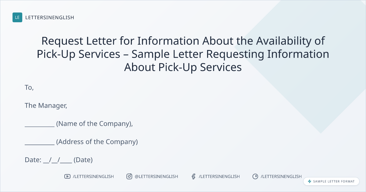 Request Letter for Information About the Availability of Pick-Up Services – Sample Letter Requesting Information About Pick-Up Services