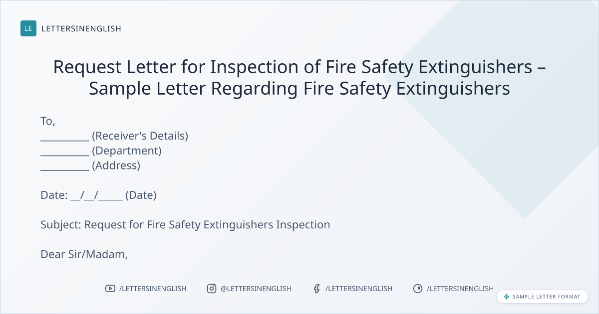 Request Letter for Inspection of Fire Safety Extinguishers – Sample Letter Regarding Fire Safety Extinguishers