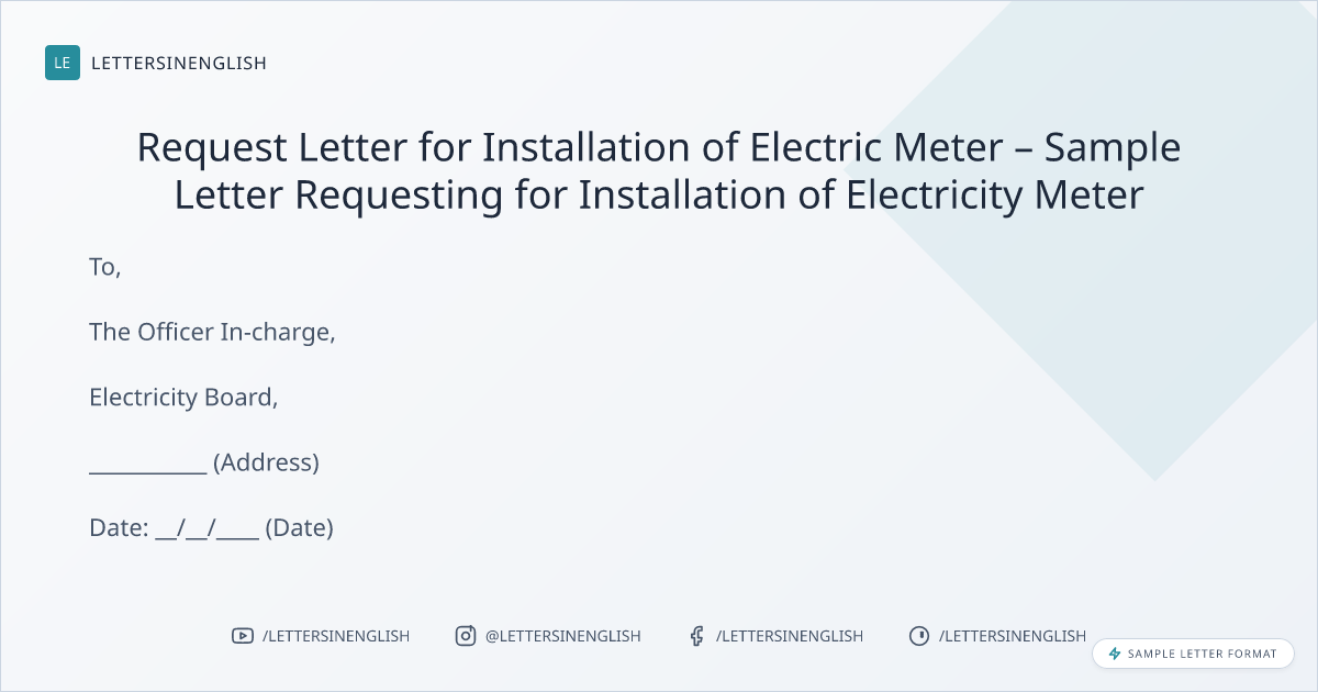 Request Letter for Installation of Electric Meter – Sample Letter Requesting for Installation of Electricity Meter