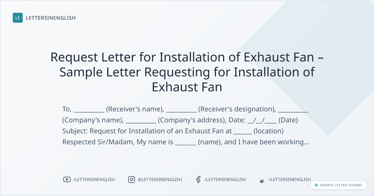 Request Letter for Installation of Exhaust Fan – Sample Letter Requesting for Installation of Exhaust Fan