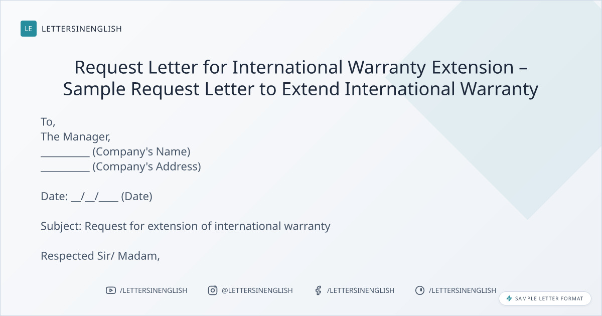 Request Letter for International Warranty Extension – Sample Request Letter to Extend International Warranty
