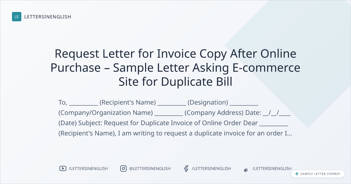 Request Letter for Invoice Copy After Online Purchase – Sample Letter Asking E-commerce Site for Duplicate Bill