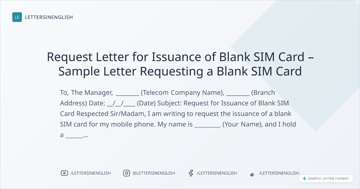 Request Letter for Issuance of Blank SIM Card – Sample Letter Requesting a Blank SIM Card