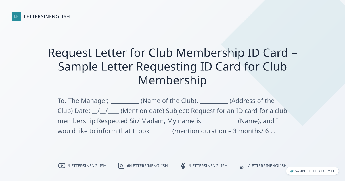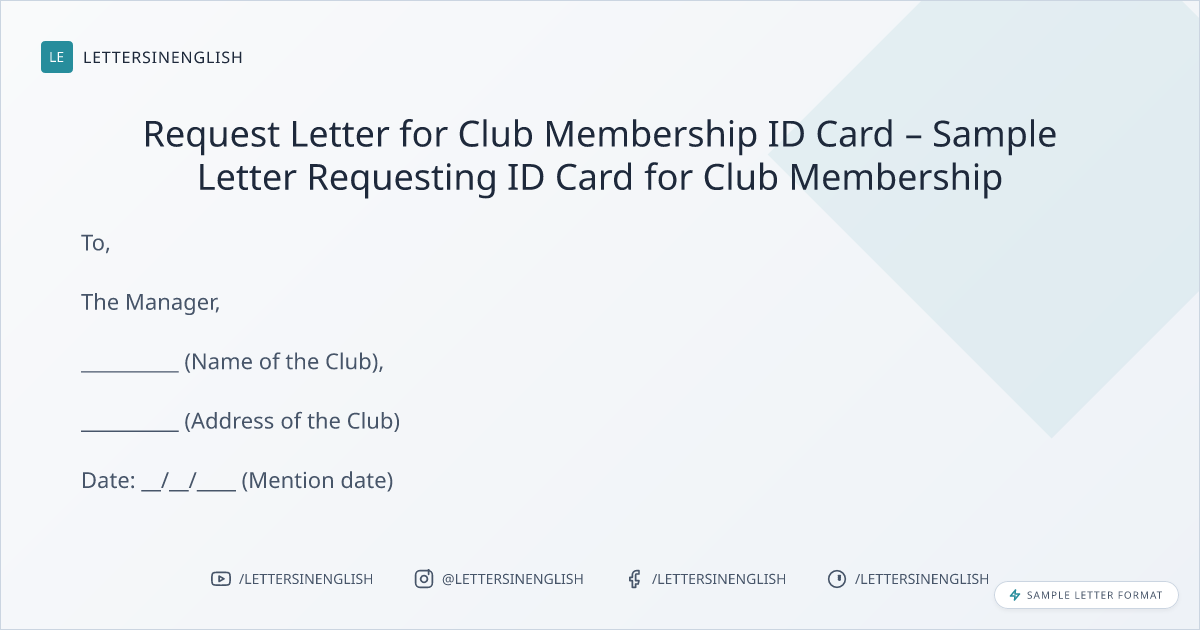 Request Letter for Club Membership ID Card – Sample Letter Requesting ID Card for Club Membership