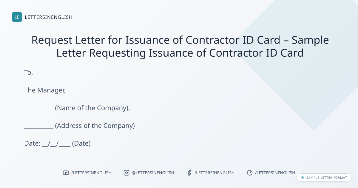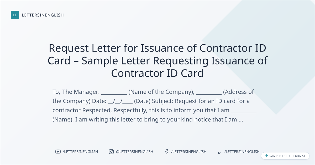 Request Letter for Issuance of Contractor ID Card – Sample Letter Requesting Issuance of Contractor ID Card