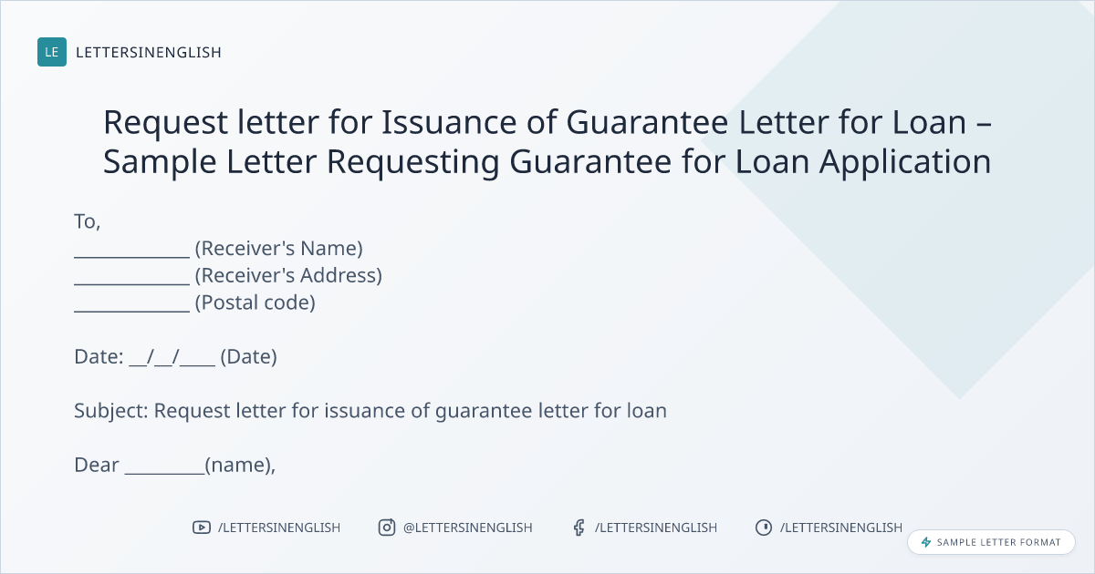 Subject: Request letter for issuance of guarantee letter for loan