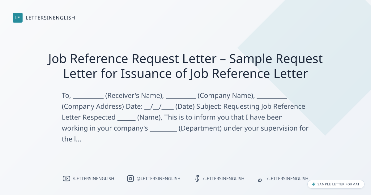 Job Reference Request Letter – Sample Request Letter for Issuance of Job Reference Letter