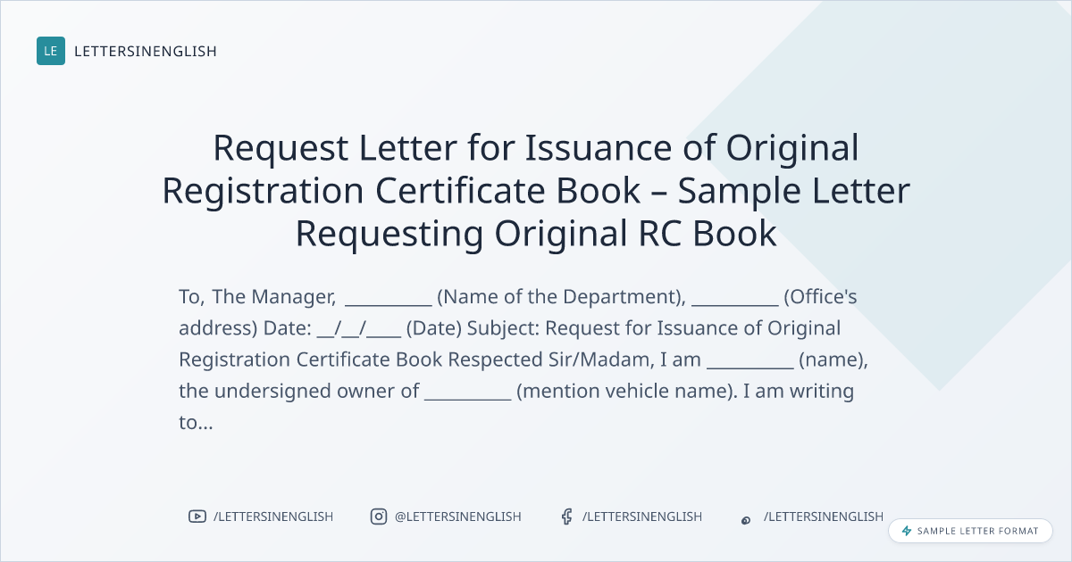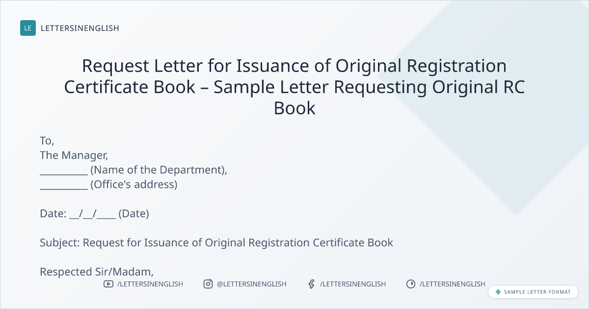 Request Letter for Issuance of Original Registration Certificate Book – Sample Letter Requesting Original RC Book