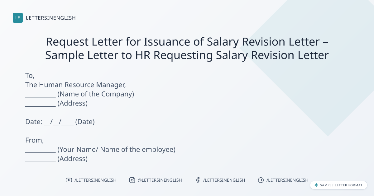 Request Letter for Issuance of Salary Revision Letter – Sample Letter to HR Requesting Salary Revision Letter