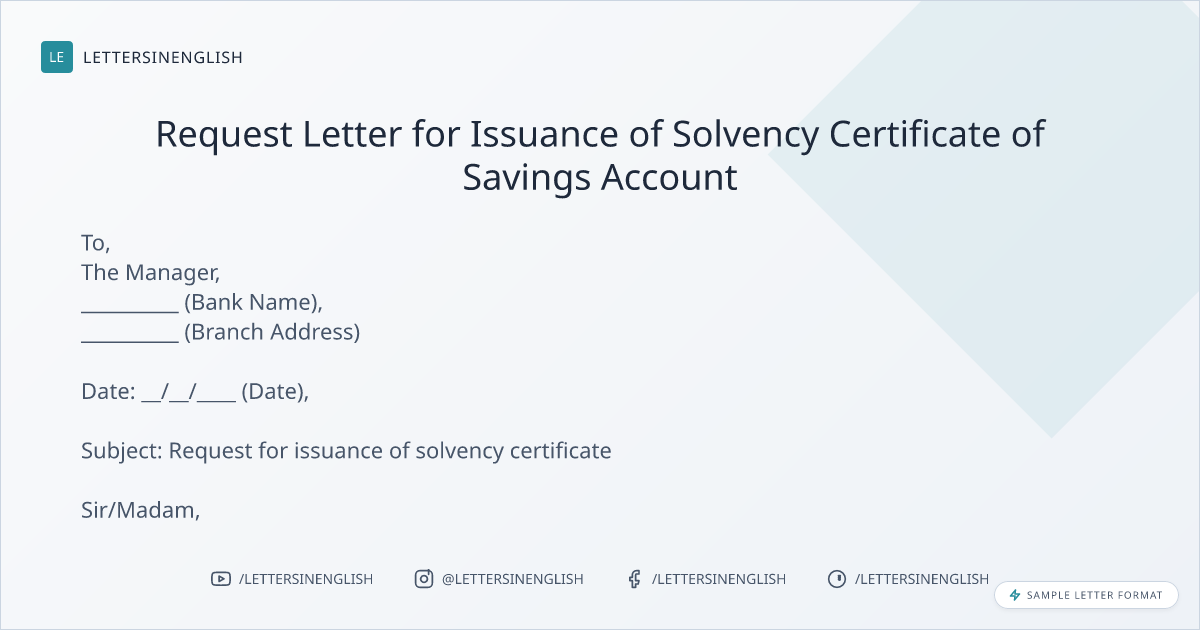 Request Letter for Issuance of Solvency Certificate of Savings Account