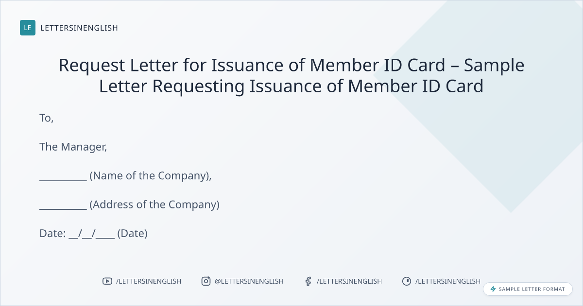 Request Letter for Issuance of Member ID Card – Sample Letter Requesting Issuance of Member ID Card