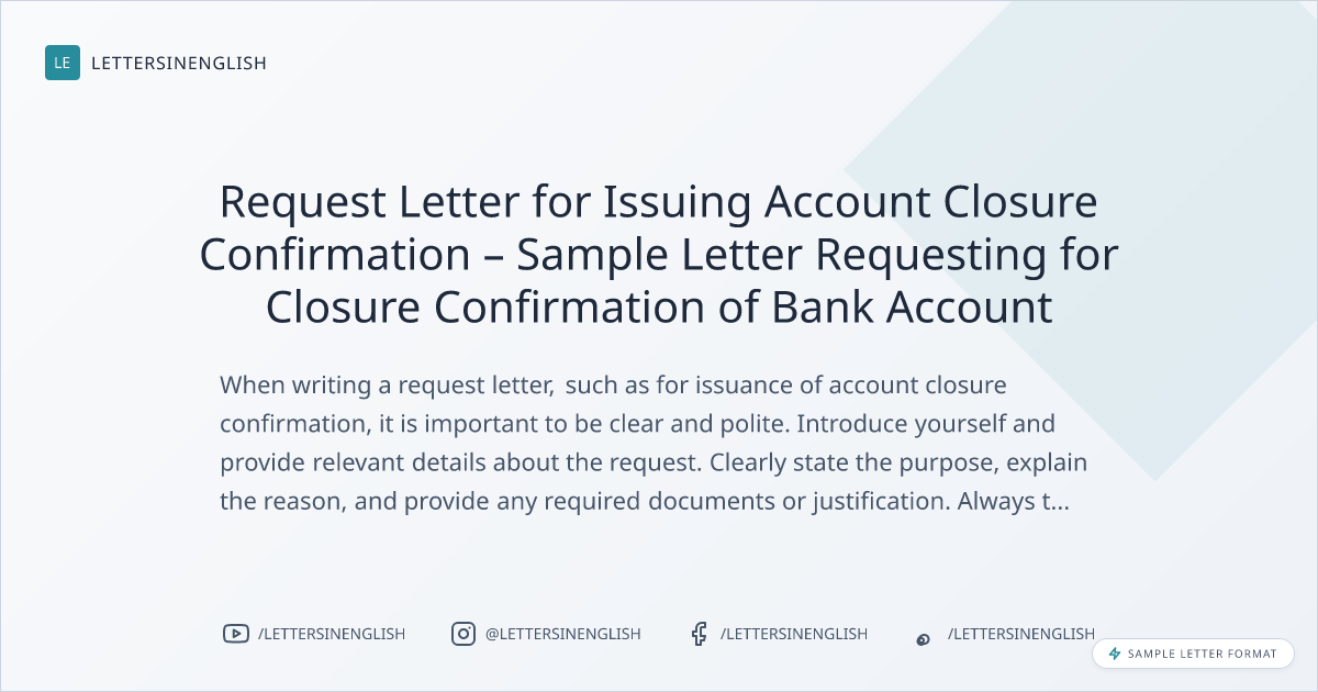 Request Letter for Issuing Account Closure Confirmation – Sample Letter Requesting for Closure Confirmation of Bank Account