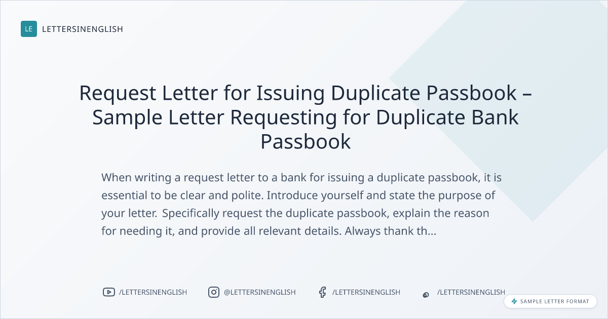 Request Letter for Issuing Duplicate Passbook – Sample Letter Requesting for Duplicate Bank Passbook