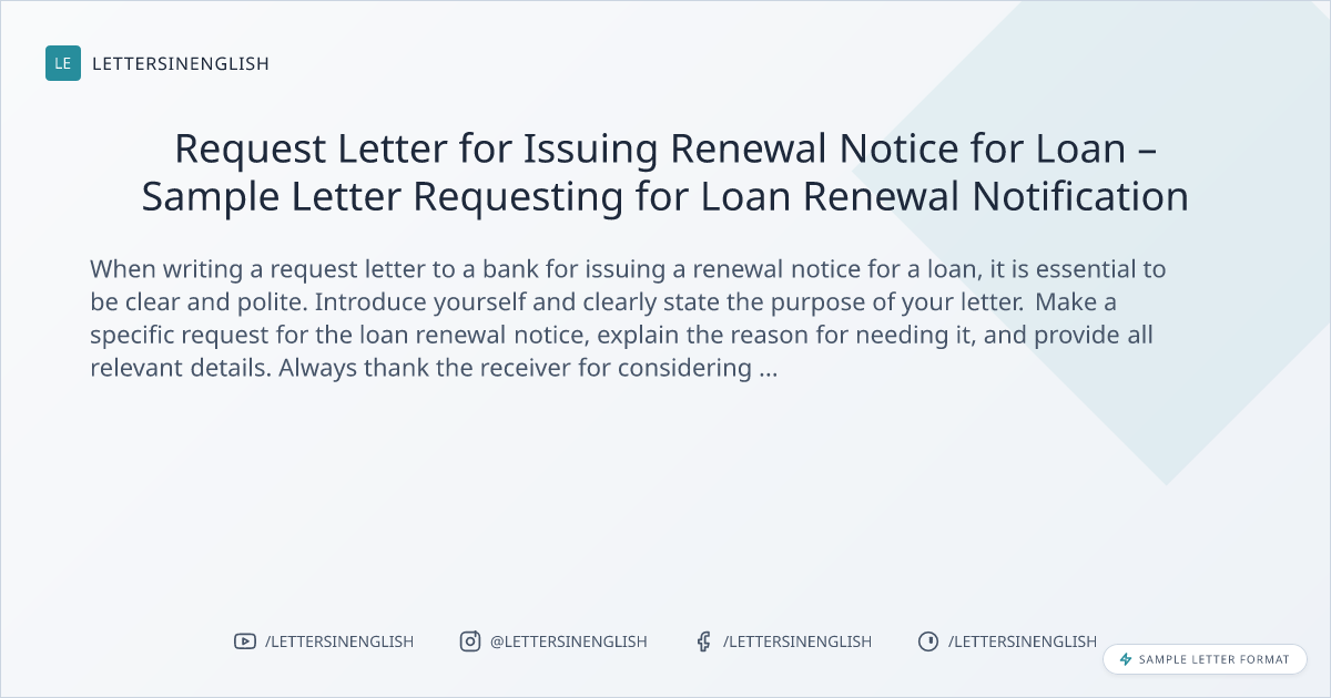 Request Letter for Issuing Renewal Notice for Loan – Sample Letter Requesting for Loan Renewal Notification