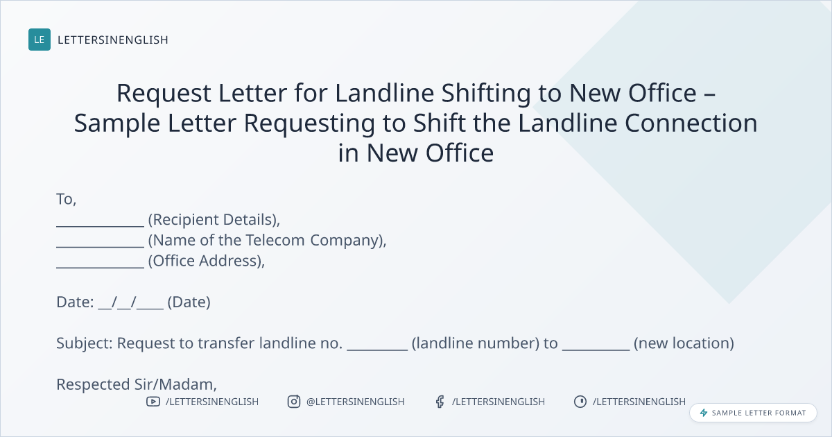 Request Letter for Landline Shifting to New Office – Sample Letter Requesting to Shift the Landline Connection in New Office