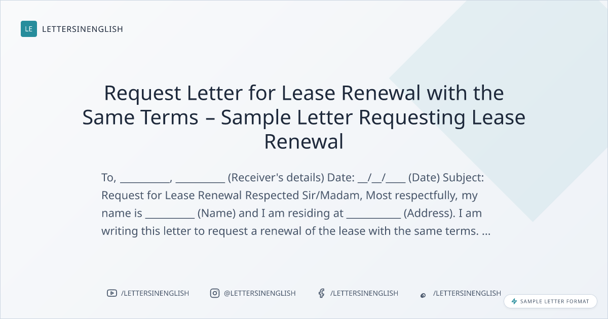 - Lease Renewal Request Letter - Sample Letter for Agreement Extension