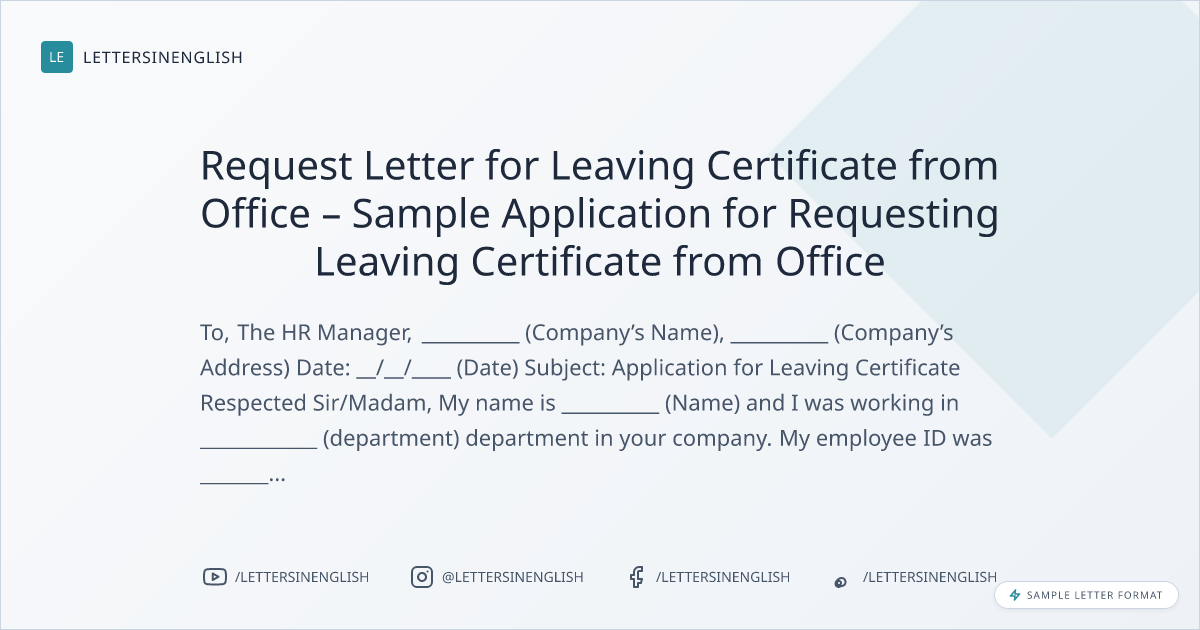Request Letter for Leaving Certificate from Office – Sample Application for Requesting Leaving Certificate from Office