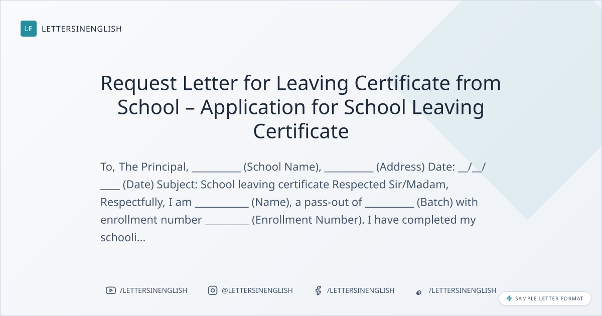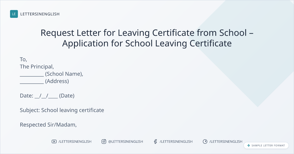 Request Letter for Leaving Certificate from School – Application for School Leaving Certificate