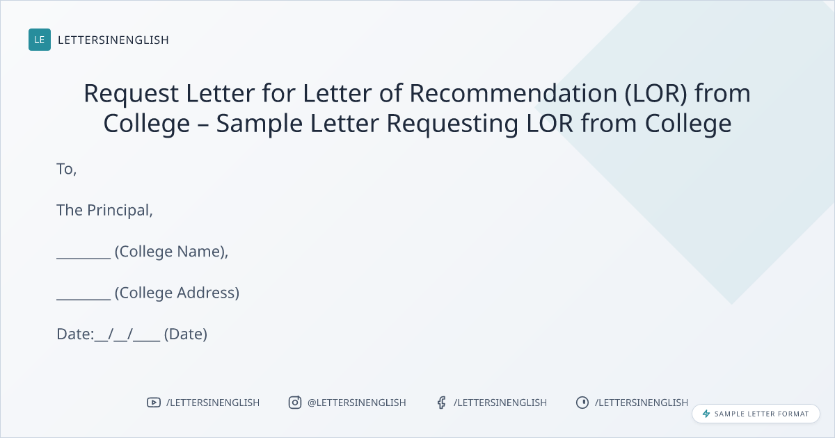 Request Letter for Letter of Recommendation (LOR) from College – Sample Letter Requesting LOR from College