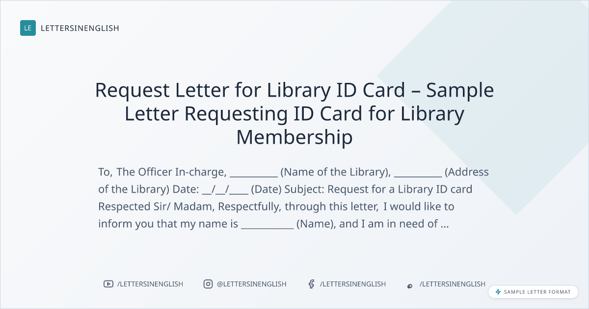 Request Letter for Library ID Card – Sample Letter Requesting ID Card for Library Membership