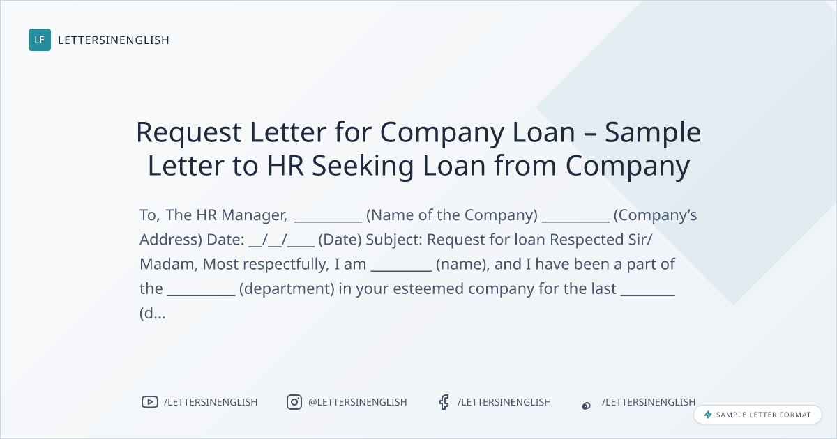 Request Letter for Company Loan – Sample Letter to HR Seeking Loan from Company